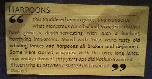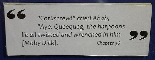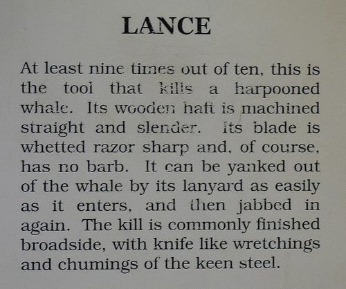 The lad becomes tethered to the infinite with the harpoon, as though there is a tether! The blubber always shifts. The whale always shifts. A sure shot is never quite what it seems to be.